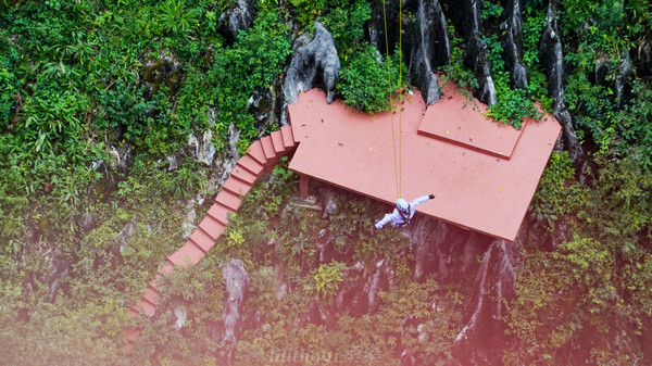 秋千一下讲人带入峡谷深渊,那种失重下落的感觉,酸爽又刺激,肾上腺素瞬间分泌,玩过还想再玩那种,玻璃栈道上看过的人,好几个都打算自己去尝试一下了,光看的话,可真是不过瘾。
