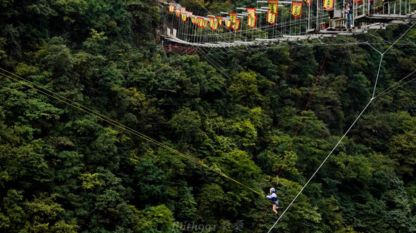 4、这里有一些惊险的游玩项目,比如飞拉达攀岩,峡谷大秋千等,因此女生最好穿长裤哦。