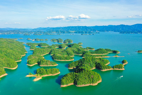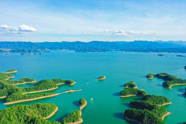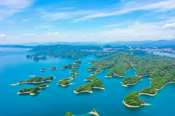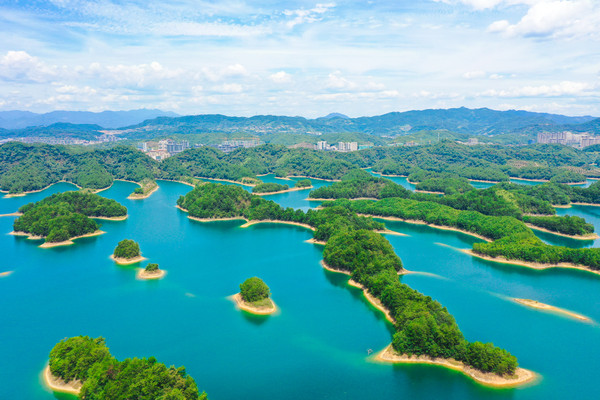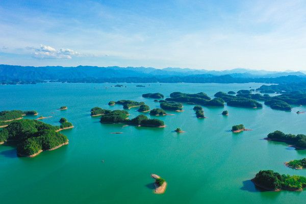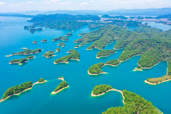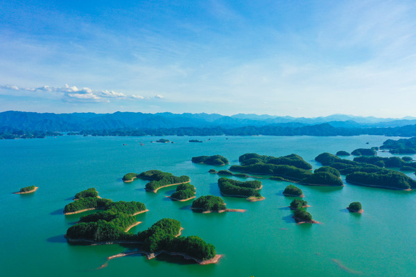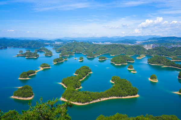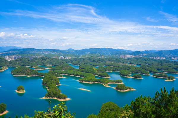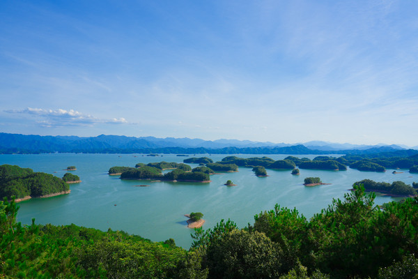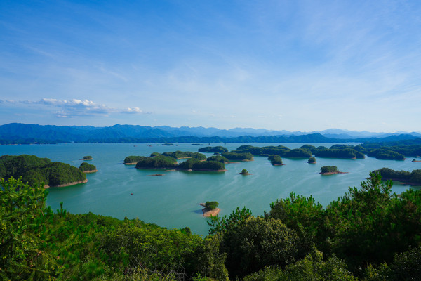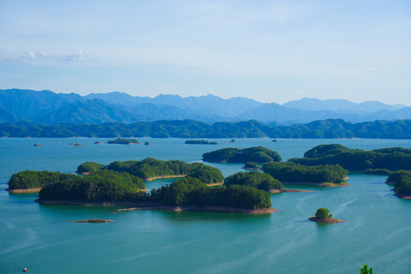 千岛湖就是一幅天然的水墨画卷,随四季更替而景色不同。这里的山是浓浓淡淡的墨,一笔一笔远。水是浅浅深深的蓝,一层一层深。人在湖中如游在画中,人在岛上则景在心中。这里有着最清澈湖水养育出的千岛湖鱼,喝一口汤,可以鲜美到心里。这里的空气清新,阳光明媚,满眼都是绿色的植物覆盖。这个夏天和我一起到千岛湖玩水吧。