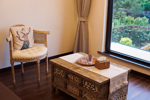 最有特色当然是民宿里面这些公共场合,这里有一个大大的壁炉,下沉式的壁炉,让人产生安全感,冬天的时候所有的客人都可以围在这里烧着火,聊着天喝着暖暖的茶,当然这里也是一个拍片的好地方,随便一拍都能出大片。