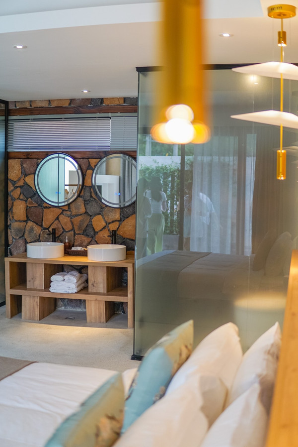 露天的浴缸可以一边泡澡一边看星星,还能听着山里面的蟋蟀叫。