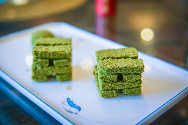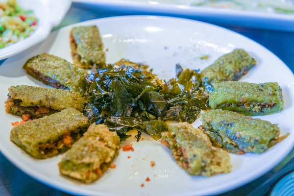 有句话说是人不可貌相,海水不可斗量,这道菜上来的时候本来是绿色的,可能放的时间久了,颜色有点变成土不拉叽的,所以根本看不上眼,然后朋友吃的说,哇太好吃了,那我也是秉承着尝一下的味道,结果这个味道是太棒了,外面是脆的,里面是糯的,还有馅料这道菜非常的推荐。