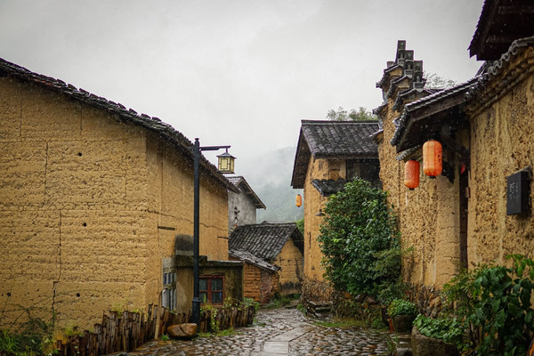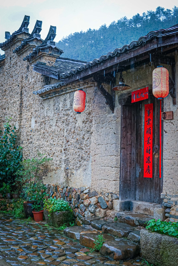 这个转角是我最喜欢的角度,在雨中,地上的鹅卵石都泛着光亮。看着这种黄土墙,感觉这里是能够让一个心灵安静的地方。