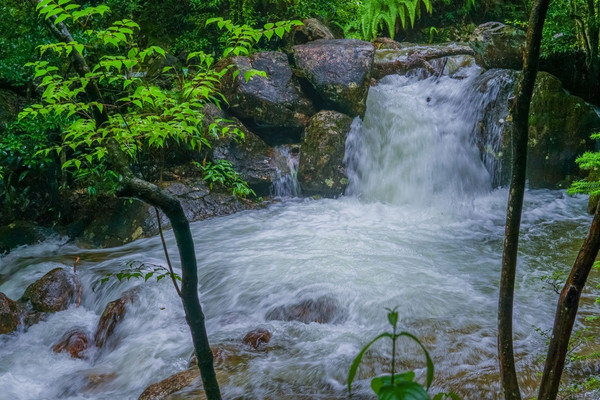古木参天的密林深处,隐藏着数不尽的奇石异岩,溪流瀑布错落其间。有耸出林海的石人矾,栩栩如生的小熊望松、双龟探月、姑嫂岩、观音望海等30多处主要景点。其中大基北瀑布落差70余米,分三级泻下,蔚为壮观。