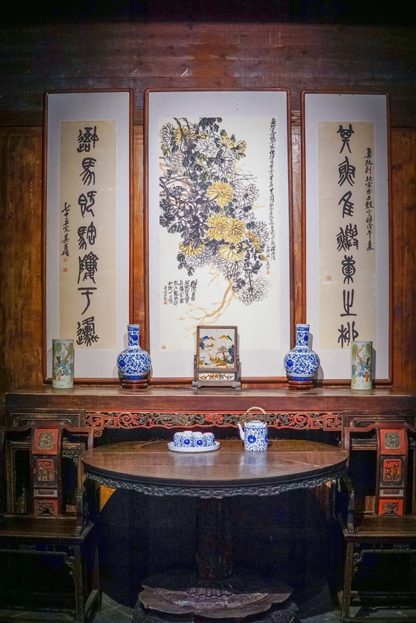 在后院扩建成了二栋结构精巧、雕刻细微入神的“梅兰竹菊轩”,也就是所说的“三间”。新楼落成之际,熠熠生辉的“泽周仁粟”金匾高悬中堂,一时瞻仰者络绎不绝,黄家更是声名隆隆。
