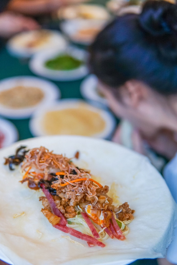 这是松阳的特色食品,是有很多很多很多很多种馅料包在一个大大大大的春卷皮里面。因为是第2次吃这个东西。分量就不太好把控,就吃了大概三个左右,结果吃撑了。
