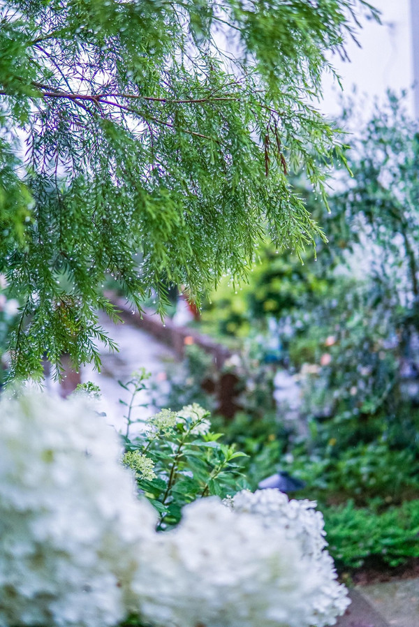 白色的绣球花开的真旺,浪漫的浪漫的感觉。
