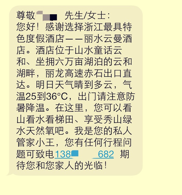 在火车上的时候,就已经收到酒店私人管家小王的欢迎短信,顿觉舒心、贴心、安心、放心。在丽水到云和的大巴上,小王管家又致电询问我们一行是亲子还是情侣,是否需要预订晚餐。我笑着随口一答:“情侣,有没有烛光晚餐?”没想到我这随口一说,等来的却是更大的惊喜!小王管家,请原谅我吧!哈哈~@。@