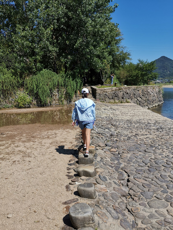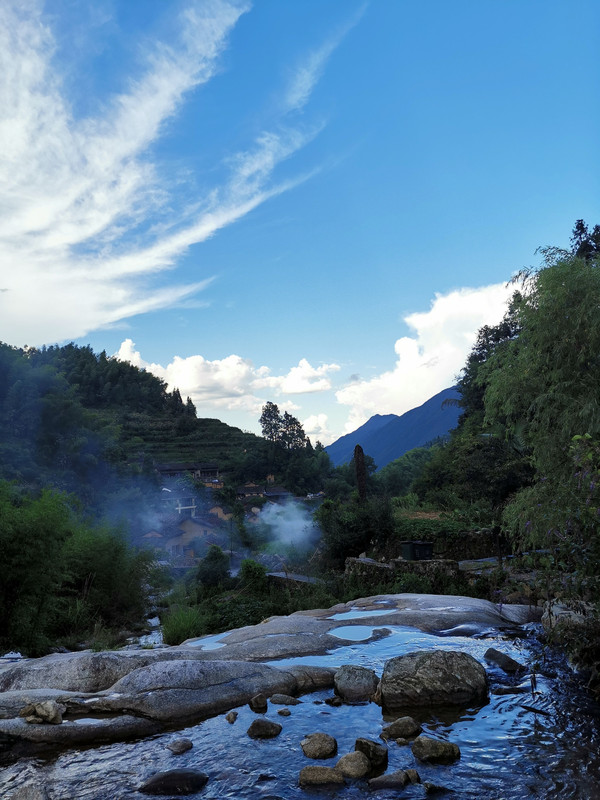 虽然累趴,但是到达民宿之后还是一扫颓丧的心情,环境真是太好了,这是个很淳朴的小村庄,叫白银谷,完全不是那种商业化的景区,只听得到潺潺水流和虫鸣鸟啼声,真是风景如画。下了一场阵雨之后极为凉爽,村庄里随意走走非常惬意,而女儿更喜欢到溪水里踩水。