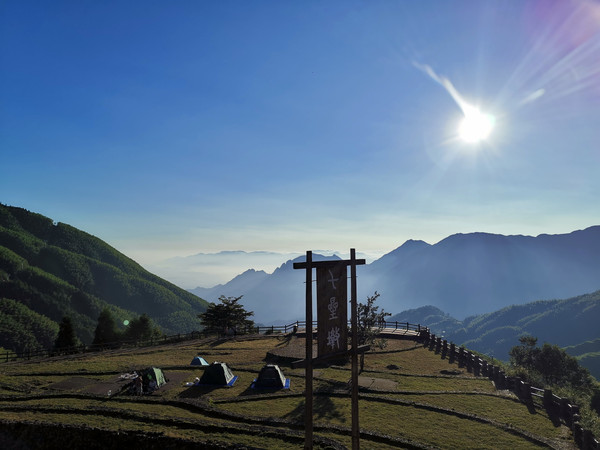 爬到山顶才知道原来这是另外一个景区:七星墩,只不过大多数的人都是从公路开车上来的,还有露营的人,而我上山的那条路非常不起眼,从山上是不太会留意到这条小道的。