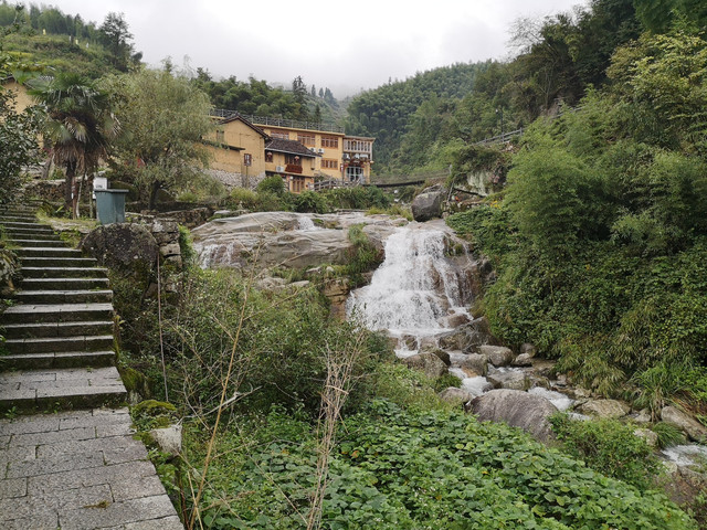 从七星墩左边的游步道下山,一路下来有瀑布相伴。差不多一小时可至山下的坑根石寨,寨子已经有些年头了,有一些黄色的石头砌的老房子,零星几家杂货店,并没有太多商业意味。一进村有一口老泉井,是当年开采银矿留下的,村口小河上一座银官桥,也是当年采矿修建的。