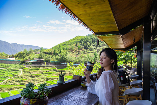 梯田逛累了,可以沿着乡间小道,走几百米就到了稻生一咖啡馆,这里也是观梯田美景的绝佳地。