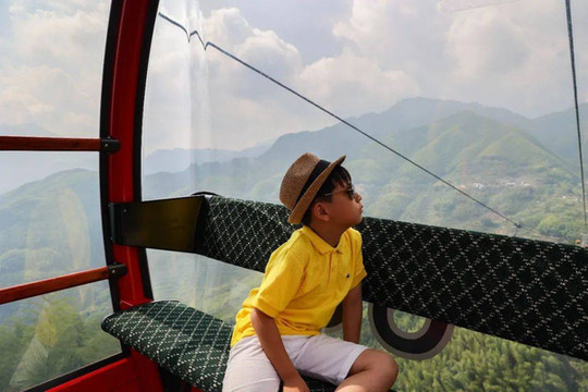 观云索道内部空间很大,可坐6人左右,容纳一家三口绰绰有余。