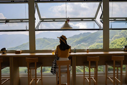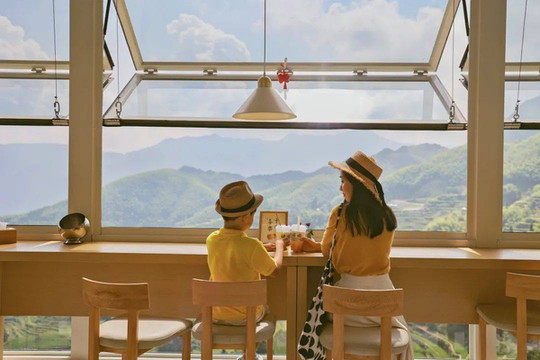 户外的梯田景致在眼前一览无余,真真正正是位于云端的美貌咖啡馆。