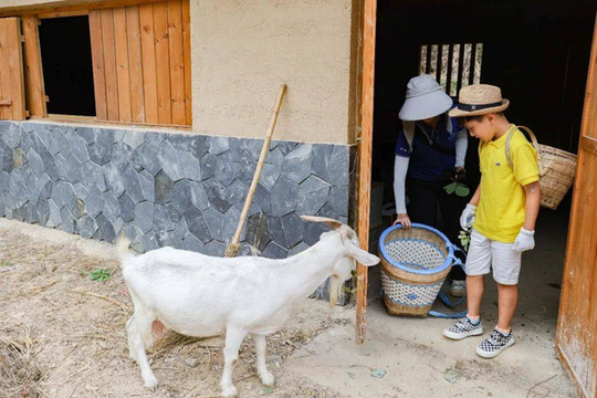 还知道了什么是葛叶,割了不少葛叶去喂山羊和兔子,如果是几个家庭一起去,梯田公社还能将钓到的鱼和采摘的蔬菜现场自行加工。