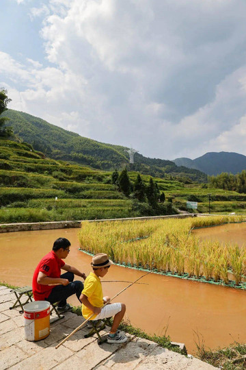 带元宝来到丽水云和,很大的一个考虑是回归自然。梯田公社就是个可以体验垂钓、田间捉鱼、植物采摘、喂养小动物的综合性亲子学农基地,坐落于云和梯田景区九曲云环区域,面积约430余亩,非常大。