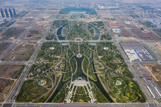 双鹤湖中央公园的建设与春秋战国出土的莲鹤方壶密不可分,莲鹤方壶不仅是国家宝物,还为双鹤湖中央公园提供了创意起点和精神内核。