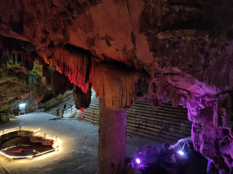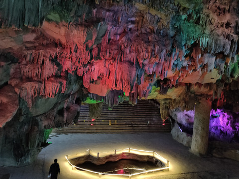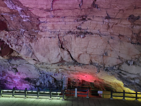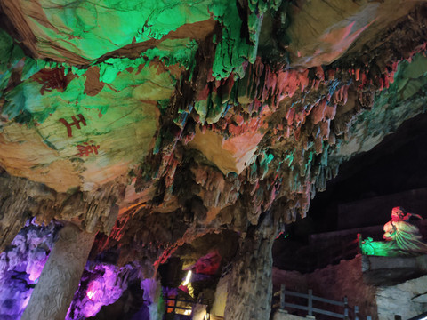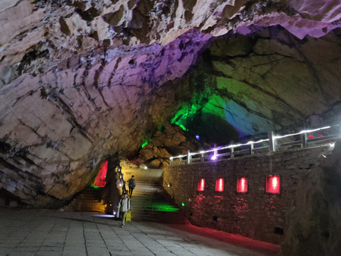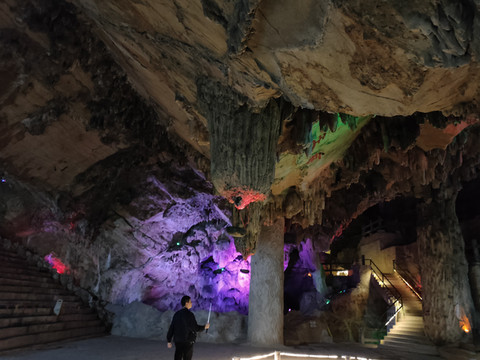 进了景区,就轻车熟路地往里走,今天居然开喷泉了,前两次疫情期间来的时候都没有开过。既然进了景区,自然是要进洞一游的,原本还想着登临山顶,看看周围的万亩茶园。不料走到海王厅,才知道上面的通道被封住了,大概是在维修,旁边的洞灵观也谢绝参观。张公洞当然是光怪陆离的,这也是其成为名洞的原因。不过我们见过了好几回,这次转了一圈就出去了,也没有觉得很遗憾。幸好手持年卡,反正不用购买门票,要不然就亏大了。