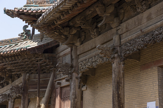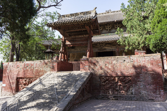 法兴寺坐北向南,原为三进院落,由南向北,中轴线上分列舍利塔、圆觉殿和后殿等。寺创建于东晋十六国时后凉神鼎元年(401年),名慈林寺,唐上元元年(674年)改名广德寺,宋治平年间改为法兴寺。现存圆觉殿是寺内最大建筑,为北宋元丰四年(1081年)重建,其中佛台为次年重修,塑像为政和元年(1111年)塑造。殿深、广各三间,六架椽悬山顶,通檐用三柱,斗拱六铺作单抄双下昂,昂呈批竹形。石门框,木板门,内外檐柱与金柱均为青石小八角柱,上刻缠枝花纹;前檐青石墙上雕动物莲花图案,刻工细致,门上槛刻有铭文。长子宋建崇庆寺千佛殿和法兴寺菩萨殿,梁架巧妙,形制美观,堪称精品;其佛坛造像精致,造型俊美,塑法凝练,较完整地保存了宋代彩绘,技巧之高超,当出名师之手,显现了宋代工艺的卓越成就,被誉为“宋塑之冠”。可惜此次不巧整个寺院在做大的整修,大门紧闭。。。这里重温下12年前的所见吧。