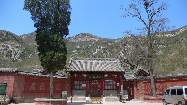 简单看完回龙寺在殿后阴凉处补充了些干粮,但远处的省道上车堵依旧,还好机灵的同伴发现地图上村外浊漳河南岸有条小路应该可以避开堵车点,实际开去正好可以完美避开,转头向北走012乡道不久就来到了群山环抱,风水绝佳的龙门寺!