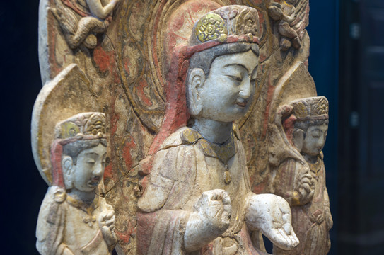 这些造像几乎都由白石雕刻而成,有别于早期造像的青石。所谓白石,就是我们常说的汉白玉,在太行山东麓就有这么一条汉白玉分布带,北起北京房山,经过曲阳县南下直到河北河南交界处,也就是邺城一带。我们知道,曲阳修德寺出土的白石造像非常有名,而邺城开采白石也很方便。质地细腻的白石非常适合进行镂空透雕,也造就了如此多的精品。