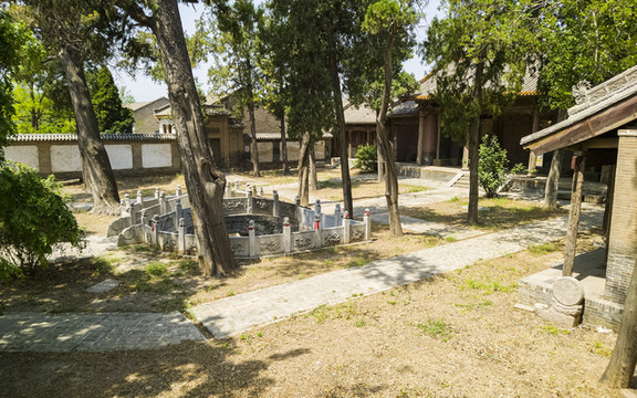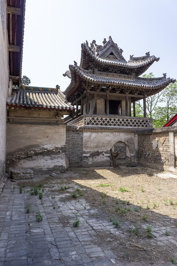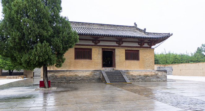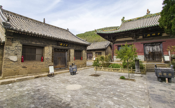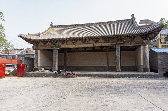 大云院 (五代-明清)始建于五代后晋天福三年(938),北宋太平兴国八年(983)奉敕改寺名为“大云禅院”。现存前后两进院落,除弥陀殿为五代原构外,其余建筑均为明、清重建。弥陀殿建于后晋天福五年(940),是我国已发现的六座五代建筑中的一座。殿内东壁和扇面墙上还有壁画的遗存。东壁为“维摩变相”,扇面墙为“西方净土变”。可惜保存现状不佳,颜色和线条已经模糊不清;但这是敦煌以外,国内仅存的五代壁画遗作。中国现存的金代前寺观壁画也仅有佛光寺(唐)、大云院(五代)、开化寺(宋)、扎塘寺(藏)、应县木塔(辽)、崇福寺(金)和岩山寺(金)七处。由此可见,大云院在中国壁画史上有着极为重要的历史地位。寺外西南隅有八角石雕七宝塔一座,建于后周显德元年(954),是比较罕见的五代石塔作品。可惜于2000年横遭盗窃者拉倒毁坏,部分石雕艺术品被盗;2004年以残件复原。