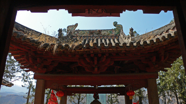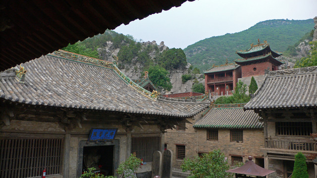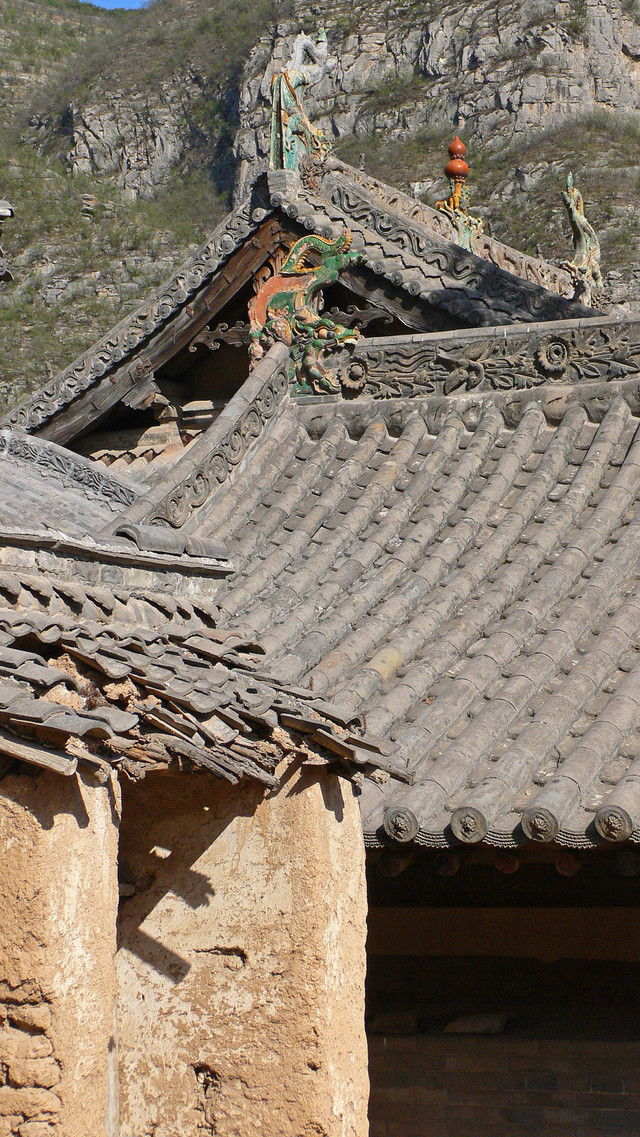 穿过挂壁公路,在虹梯村转头沿太行1号路向上,接下来都是路况不错的柏油路,景色宜人。一直开到尽头就是沿浊漳河北岸的324省道,无奈到时正好堵车,一路的大货车看不到头。。。边上的侯壁村有个金代的回龙寺,那就先去看下,等堵车缓解。