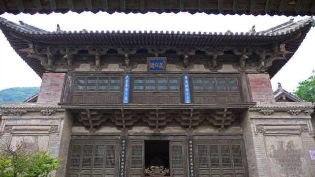 青莲寺上寺藏经阁,此阁为两层结构,一层无论木作还是砖作都是清代样式,而二层檐下却有真昂挑出梁架结构非常古老,所见之宋、金结构均无与之类似者,而现存唐代遗构中却可找到同类,由此有人认为此殿为又一座唐构。在仅存数做的唐代建筑中,能找出一座与藏经阁梁栱结构完全相同且创建年号明确的建筑,而众多的五代及北宋建筑无一应用实例,正符合“上一代有,下一代无”的结构断代原则,说明这一梁栱结构到宋代已不再应用了,这是把藏经阁归纳为唐构的重要原因。当年的梁林夫妇,一直想要到此考察,却一次次因为兵荒马乱,错过机会。解放后再也没有时间精力做野外考察,因此断代成为一大憾事。