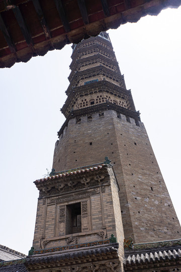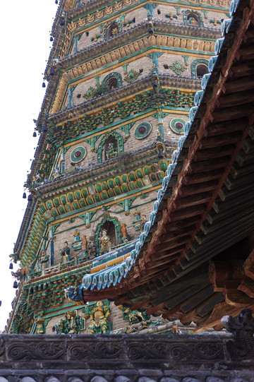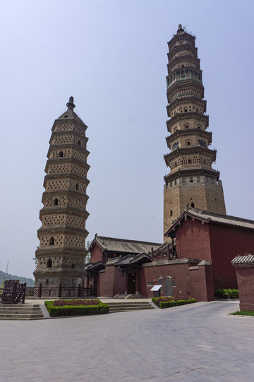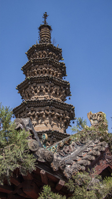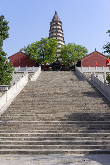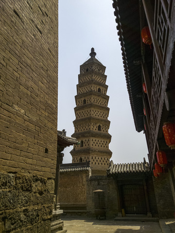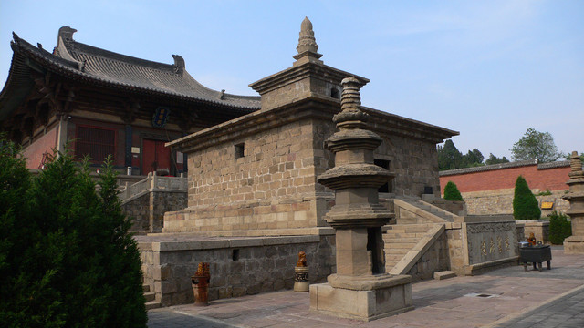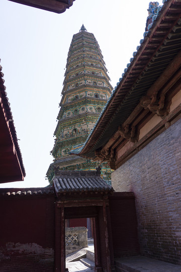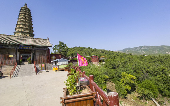 全国重点文物保护单位。在潞城市城东北22千米的下黄乡辛安村东风凰山巅,地势居高临下,雄伟壮观。始建于唐天宝六年(747年),寺院周围有砖砌花栏围墙,院内有佛殿三间,琉璃九脊屋顶,飞檐斗拱,雅致古朴,呈宋代建筑风格。殿前有四根方形石柱撑起一间香亭,前檐石柱上刻“雾迷塔影烟迷寺 ,暮听钟声夜听潮”。后檐石柱刻“飞阁流丹临极地,层峦耸翠出重霄”。殿西矗立着大圣宝塔,俗称青龙宝塔,建于北宋元佑二年(公元1087年),距今已有900多年的历史。塔平面呈八角形,周长16米,塔基用沙石砌筑。南向辟门,门洞顶部封闭,不可攀登。塔身七级,高17米,逐层均有收分,层层为砖雕五铺作双抄斗拱,挑角部位用四十五度斜拱和异形拱,上承托砖雕檐飞,支撑塔檐,出檐用板瓦,飞檐凌空,形状各异。每个挑角各挂有二只铁铃,总共56只。塔顶安装八个铁人,塔刹为仰莲宝瓶。巍峨凌云,古朴秀丽。是一座不可多见的宋代密檐式砖塔。寺院前面竖有八角青石经幢一座,唐物,刻陀罗尼经及建幢建寺的铭记于上,幢座八面雕有8个伎乐人,风姿秀美。