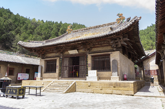 回龙寺现存金代佛殿一座,坐北朝南,单层檐、悬山顶,面阔三间,进深四椽,平面近方形。斗四铺作,出平昂。梁架结构为三椽袱对搭牵通檐用三柱。佛殿柱头不施普拍枋,直接坐栌斗;阑额至角柱不出头;柱头铺作用蝉肚实柏;昂介于真昂与假昂的独特做法,是研究古代建筑地方手法的珍贵实例。
