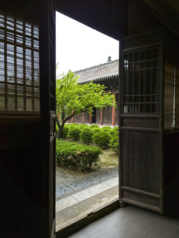 和12年前相比,修旧如旧的大殿保持了原来的古朴斑驳,比之同一时代但整修一新的龙门寺西配殿和大云院更为厚重和具有历史感。不知不觉中天色已晚,再次离开时回望古拙的大殿和飞起的屋脊,尤感当年第一次面对时的那份激动!