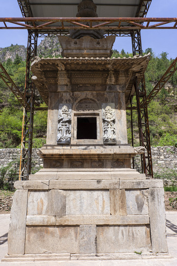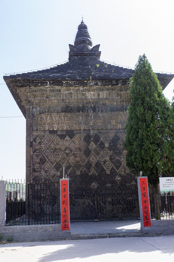 车出邺城,西行往林州,太行山方向303省道过铜冶镇右手岔道沿006县道进去不远,在路的尽头就会看到一座纹饰精美的方塔伫立在右手边的小山坡上。