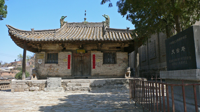 天台庵所处的王曲村,是一个位于古代河南晋阳古官道上的古村。晋阳古官道在古代是一条从河南林州过山西平顺、潞城、黎城县境到潞安府,再到晋阳古城的官道,王曲村是古道上一个大村庄,村庄前后蔓延二三里,古道边上的店铺痕迹依然有残存。