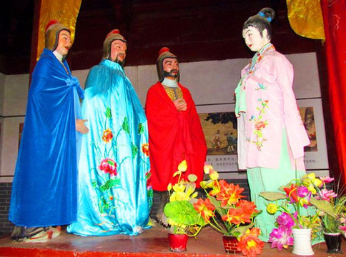 右侧则是“木兰还乡”塑像:贺元帅、刘将军、校尉均铠甲鲜明,神色诧异,木兰头绾双髻,着粉色衣裙,面带羞涩。表现的是木兰军旅中同伴得知木兰本是女儿身后的惊诧和对木兰的钦佩之情。一眼便可看出,两组塑像是依据《木兰诗》和戏剧作品构思雕塑而成,体现了历史真实和今人情感的和谐相融。
