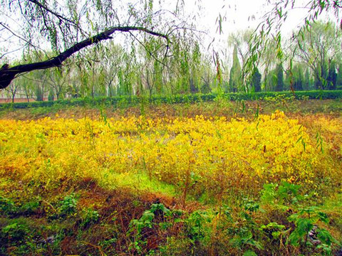 从木兰祠出来,对面是木兰陵园,走进木兰陵园是一片开阔的水塘,塘内虽水已干枯,但一片漂亮的黄色野花的秋色美景,绕过水塘的背后就是两座墓地,一座是木兰的家人,另一座就是孝烈大将军花木兰之墓。如今的木兰祠已成为豫东的一大游览胜地,吸引着全国各地对这位巾帼英雄景仰的人们纷至沓来,争相瞻仰。(图文:冯赣勇)