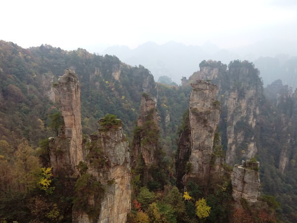 坐百龙电梯到袁家界景区。P.S.山路真是十八弯,要晕车的同学注意,要么带上马夹袋,要么吞了晕车药,要么让同伴把你打晕,直接打包拖走。当时有人晕车的时候我真想选择最后一个!!!