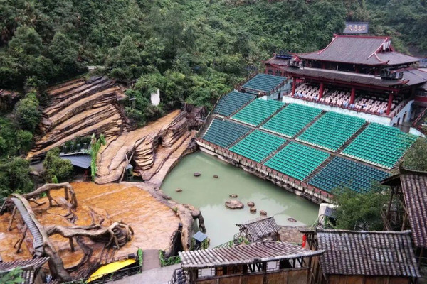 山上有美景,山下的表演也值得一看。晚上八点,入口处的剧场会上演实景演出《天门狐仙》,表现了湖南地区传说“刘海砍樵”的故事。