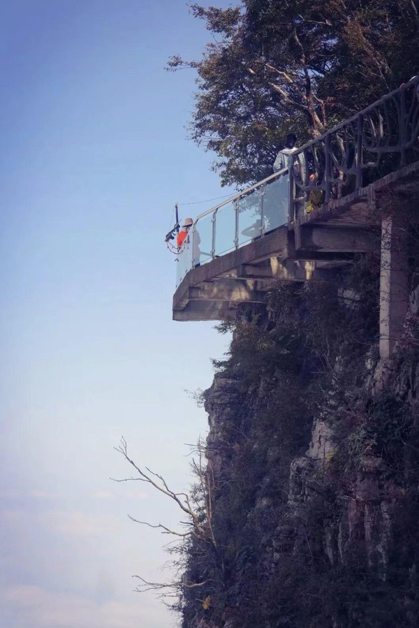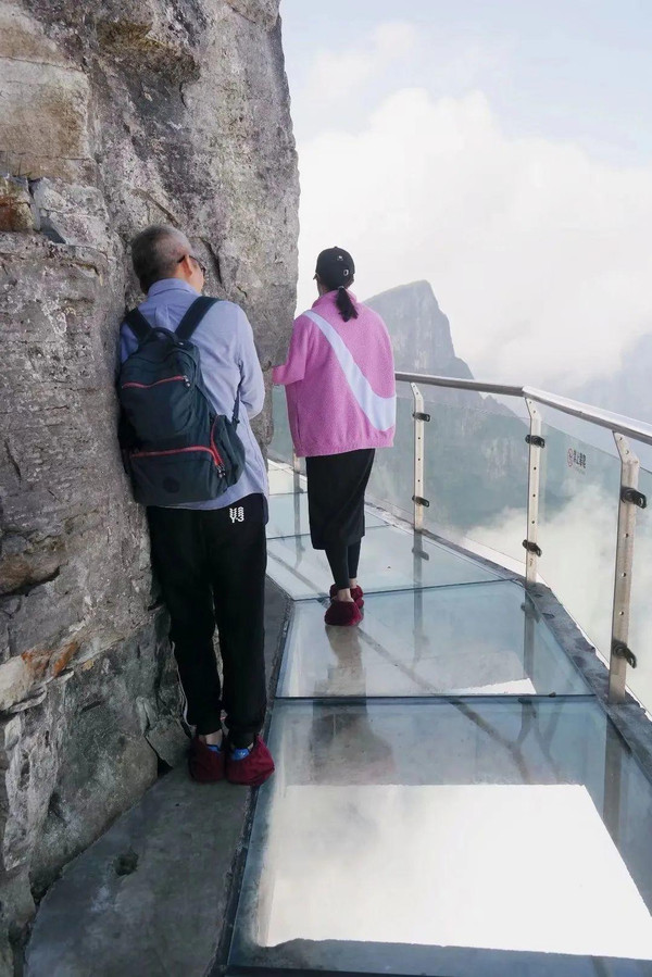木栈道上如果恐高,可以沿着崖壁一侧缓缓前行,但玻璃栈道只要低头就可以看到脚下的深谷,对于恐高的人来说,真的是个不小的挑战,我去的时候就碰到一位游客躲在角落不敢迈步。