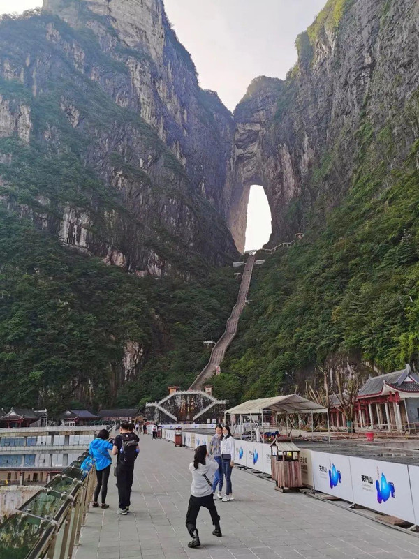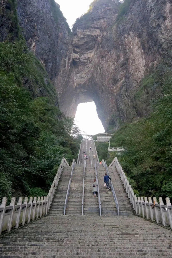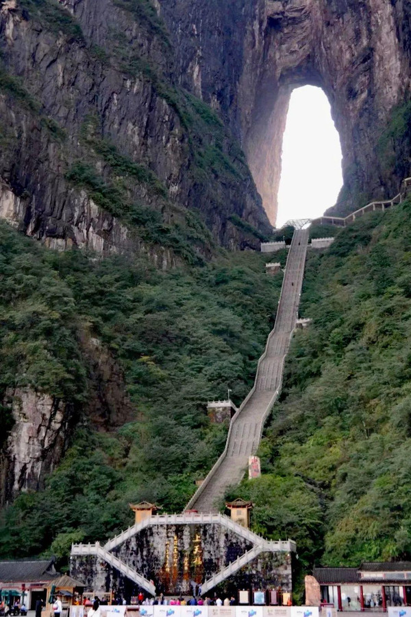 站在广场上举目而望,天门洞似乎触手可及,实际上要到达洞口,还需要攀爬999级的台阶(也可以乘坐登天门扶梯),名曰“上天梯”。
