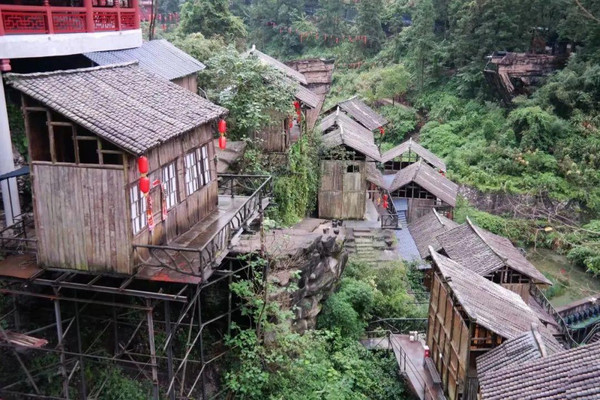 站在寨顶举目四顾,周围绿草丛生,悬崖峭壁上伸出许多空中观景台。阴雨天时,寨台四周云雾弥漫,千峰攒聚;天气晴朗时,薄雾飘飞,群峰或明或暗,变幻神奇。