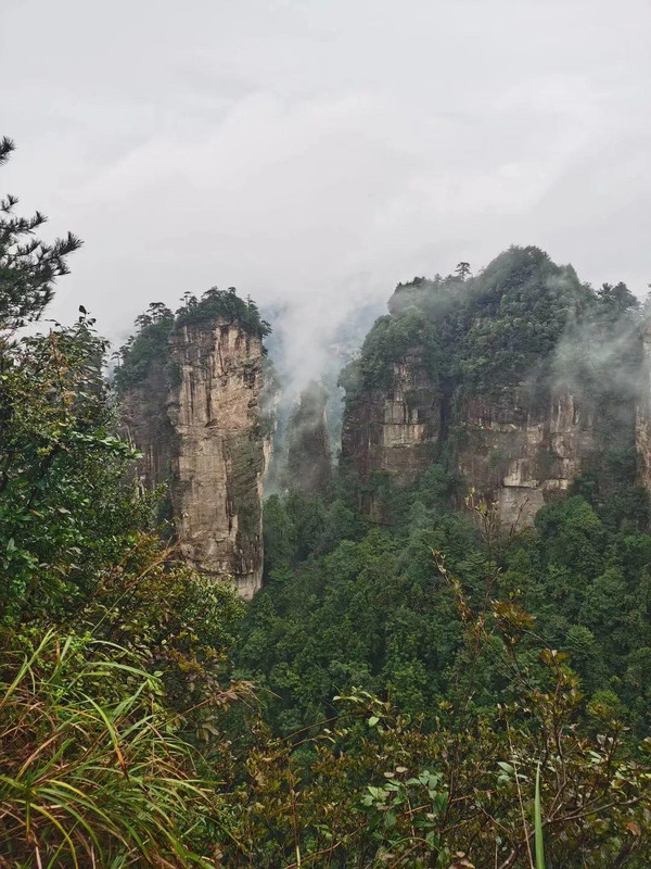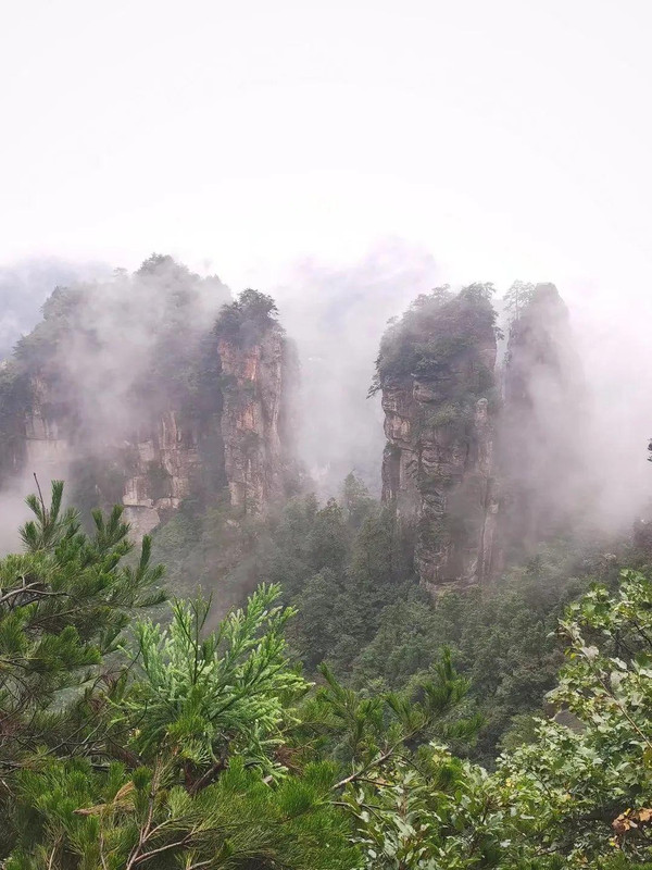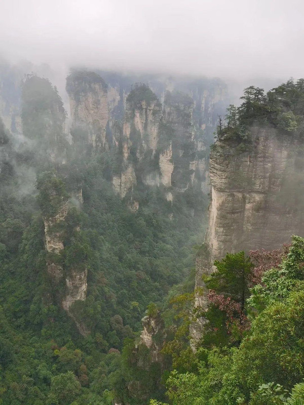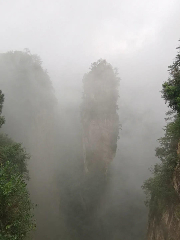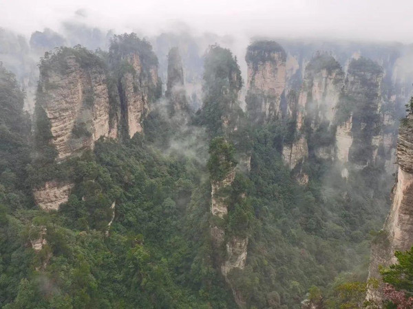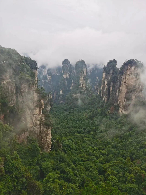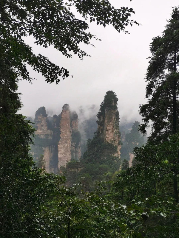 但张家界是我见过最奇的山,因为它告诉我山不止是“一座座”,还可以是“一根根”、“一台台”;山不止有连绵起伏,还可以孤峰兀立,聚孤成林;山不止能毓翠凌云,还可以洞开天门,临渊飞桥......
