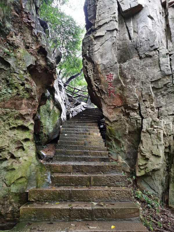 爬上天门洞后,乘坐穿山自动扶梯可达山顶。
