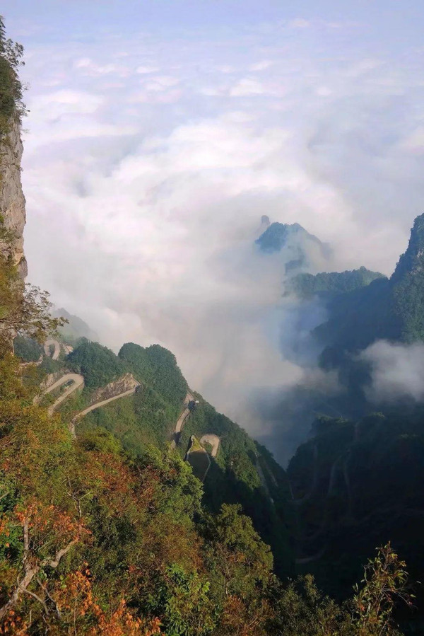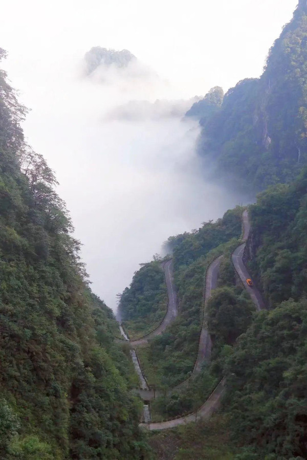 当渐渐习惯急摆、信任司机,就可以一边享受过弯的爽快,一边欣赏山谷的美景,时而穿云踏雾,时而青翠环绕,一侧是绝壁云海,一侧是翠谷幽深,让人荡气回肠。