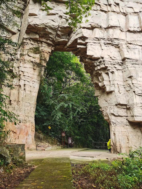 下图为双门迎宾,三座山峰间辟出两道大门,宽的叫“长寿门”,窄的叫“幸福门”,用美好的祝福迎接远道而来的宾客。(图中只拍到一门)