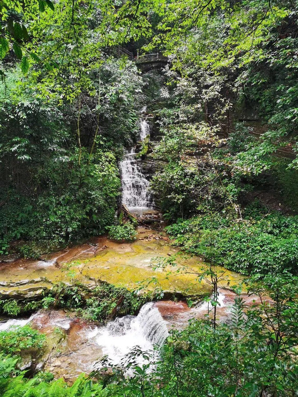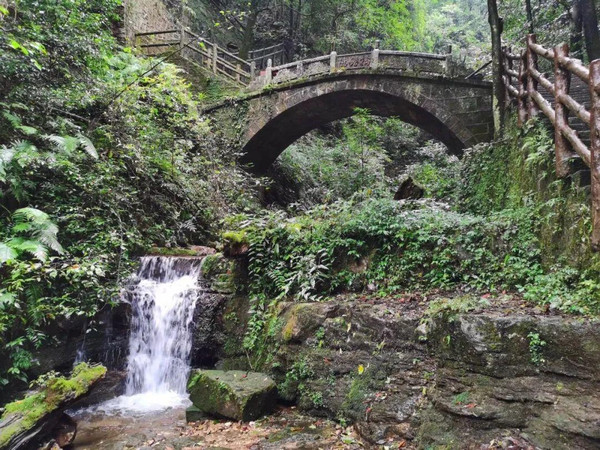 南天门后来到一处石桥,桥下水流呈阶梯状,跌宕多姿,清脆悦耳,晶莹闪烁,尽显水的坠落之美。
