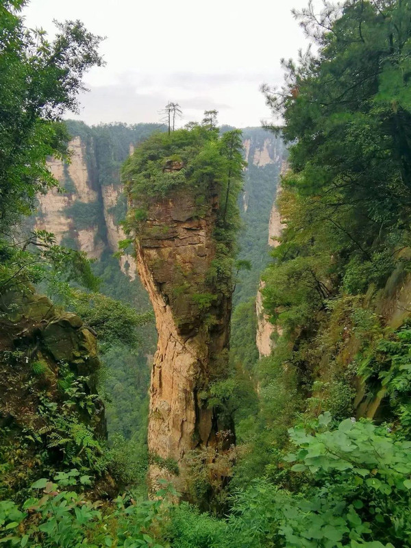 雨后初晴固然是欣赏袁家界峰林的最好时间,但毕竟少见,张家界大部分时间都是阴雨绵绵,云山雾罩,这样的时候是看不到奇峰景观的,所以登山要挑天晴的时候。好在门票4天内都有效,要把好天气留给山上的景观(袁家界、黄石寨、天子山等),我在张家界期间就两次登上袁家界,第一次天阴没看到什么,第二次才拍出这些照片。