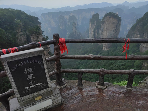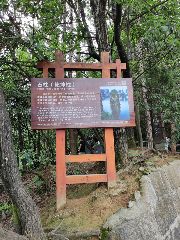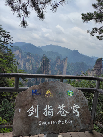 下了百龙天梯,沿着步道前往停车场,百龙天梯上站到停车场,有很长的一段路需要走。在停车场乘坐环保车到袁家界,山上环保车线路是连通的,百龙天梯上站—后花园站(袁家界)—迷魂台站(袁家界)—天下第一桥站(袁家界)—望桥台站(袁家界)—杨家界索道上站(杨家界)—三岔口站(老屋场)—神堂湾站(天子山)—点将台站(天子山)—贺龙公园站(天子山)—天子山索道上站。其中三岔口站是一个中转站,可以中转到天子山风景区(天子山门票站—三岔路口),环保车免费上山,唯一不需要花钱的上山线路),杨家界风景区(三岔口站—杨家界索道上站),袁家界风景区(三岔口站—杨家界索道上站—天下第一桥(袁家界)—百龙天梯上站)。袁家界风景区两端为百龙天梯上站和天下第一桥车站,百龙天梯上山,乘坐环保车一站到后花园下。从后花园开始游玩,从后花园经迷魂台(这里最著名的是乾坤柱,一千多米高的乾坤柱是张家界的名片,电影《阿凡达》中哈利路亚山的原型),到天下第一桥,结束袁家界游览,全程约2小时。在天下第一桥站坐环保车到杨家界索道上站。下车后往杨家界索道上站那个方向走,经过索道上站,就到了天然长城。然后原路返回。杨家界风景区是山上景区中较大的一个,因为森林大火乌龙寨天波府关闭,我又没有想走下杨家界,所以一步登天,空中走廊没有看。在杨家界索道上站乘坐环保车到三岔口站,到三岔路口就是要看老屋场,传说是张家界国家森林公园最美的景点之一,这里的石柱也是整个张家界国家森林公园最好看的,最典型的。老屋场包含两个景点:神兵聚会和空中田园。参观老屋场要乘电瓶车,是另外付费,往返53元/人,在神兵聚会可以看到对面的百龙天梯,能看到百龙天梯的运行,这里的景色可以说是整个张家界武陵源景区最美的,值得一看!虽然又花费53元。返回三岔口站,乘坐环保车到大观台,发车后向师傅说在大观台下,结果被回了句有等车的功夫都走到了,错愣间就到了,估计3分钟,本来以为师傅不会停车,不过师傅好人,还是踩了一脚。大观台只是一个观景台,游览线路呈丁字形,从柏油路下来需要走下600级台阶,然后看到左右两条路,向左去神鸡啄食和一步难行,不远走十几分钟就到了。向右去仙人桥和天子座,听说要走半小时以上,我们没有去。不管是往左还是往右,都是需要原路返回。而且需要爬上恐怖的600级台阶,才能回到大观台环保车车站。返回大观台站,等了几趟车都没有停,直接走回三岔口站,的确不是很远。三岔口站到贺龙公园(天子山景区)之间还有两个小点,分别是神堂湾和点将台,这会学乖了,先咨询了一下工作人员,神堂湾和点将台这两个景点哪个值得看,以及刚才大观台站为什么好多车不停,最后选择了点将台,主要是工作人员说点将台距离贺龙公园1000多米,步行15分钟左右,就算没有环保车停,我们也能走到贺龙公园。乘坐环保车前往点将台,提醒大家,到一些小景点一定要提前告诉司机师傅。否则是直接开过。点将台我的感觉就是游客少,参观时间不长,等车时间长。乘坐环保车到达天子山景区贺龙公园站,贺龙公园不大,景点成环型,有贺龙铜像,天子阁,以及仙女散花、西海峰林、御笔峰、仙女散花等几个观景台,游览各个观景台,最后坐天子山索道下山,换乘环保车到东门(索溪峪标志门),打车回酒店。