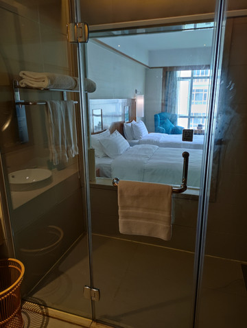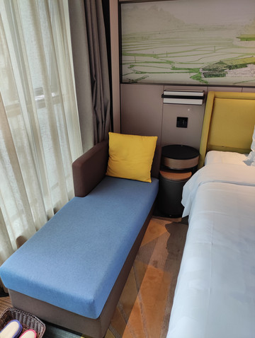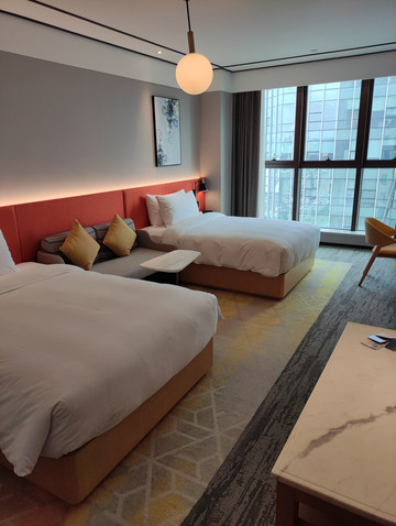 北京大雨,接近中午时接到国航通知,航班延误,起飞时间改为19点,下午出发到机场,值机,19点准时起飞,21点45到达张家界荷花机场,机场很小,提取行李,出站网络约车,大概10分钟的车程,到达张家界希尔顿欢朋酒店,选择张家界希尔顿欢朋酒店是携程看了一段旅游博主发的视频,说张家界希尔顿欢朋酒店是离张家界天门山索道下站最近的酒店之一,以及后面的张家界京武铂尔曼酒店都是受到视频博主的影响预定的。酒店位置的确向旅游博主所说就在天门山索道下站的斜对面,乘坐索道非常方便,其次到张家界武陵源森林公园方便,离张家界中心汽车站和张家界火车站很近,大概步行5分钟左右。酒店周边餐饮店很多,购物,吃饭方便,酒店外观大气,房间内部无卫生四角,干湿分离,酒店为带儿童入住的房间提供儿童牙刷及拖鞋,以及充足矿泉水,非常人性化,卫生间有紧急按钮,安全感十足,早餐非富,上菜及时。