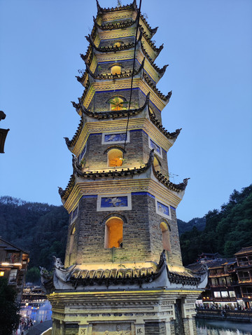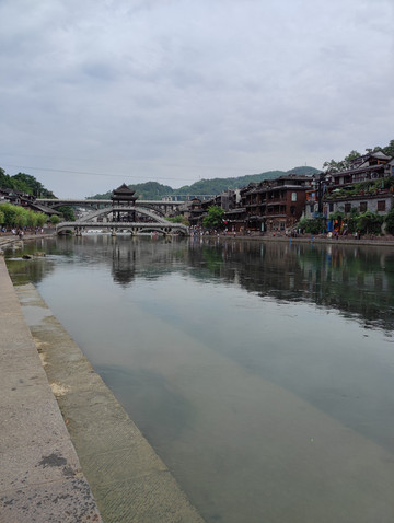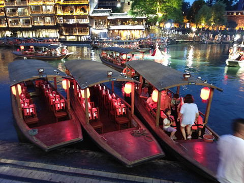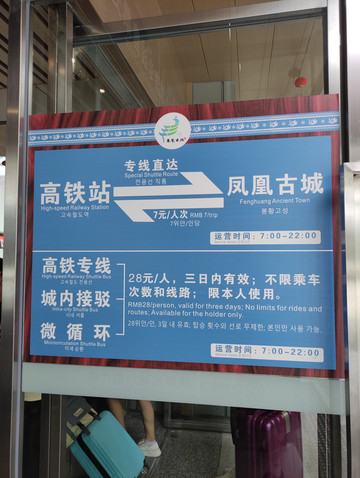 早餐后退房,在酒店门口等武陵源汽车站到张家界中心汽车站的班车(途径张家界西站),结果被过路的出租车看到,师傅强烈建议我乘坐他的车,班车两人26,让我再加26,直接送到高铁站,又舒服又快,一想出租车师傅说的对,价格合理,最后变成打车到张家界西站。在车上购买了11点半张家界西到凤凰古城高铁。在高铁上预定了凤凰国际酒店,原因很简单,网上评论说凤凰国际酒店就在南华里游客中心的旁边,而且离凤凰古城很非常近。高铁车程约1小时到达凤凰古城站,在凤凰古城高铁站搭乘高铁接驳车,大概30分钟到达南华里游客中心,穿过商业街,步行2-3分钟,到达凤凰国际酒店,酒店就在凤凰古城的入口处,出酒店右转下坡步行2-3分钟就到凤凰文化广场和古城游客中心,步行十分钟可以到北门码头。酒店门口就是商业区,餐馆林立,还有KFC,吃饭购物方便。酒店的早餐,品种不是很多,吃饱没有问题,房间送水果及两小瓶矿泉水(矿泉水不能添加),缺点是前台太过热情,见面就推销阿妹带你逛古城或者苗寨,酒店隔音效果一般,房间卫生一般。到酒店办理入住,逛古城,回来吃饭,休息,夜逛古城。