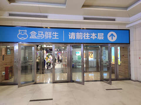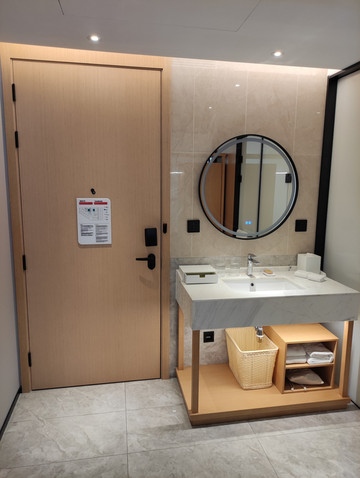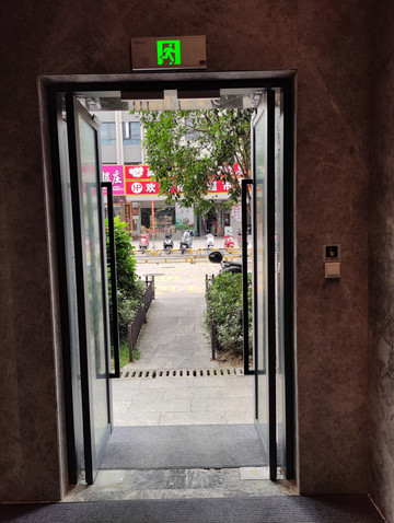 电梯间有一道门直通酒店外商业街